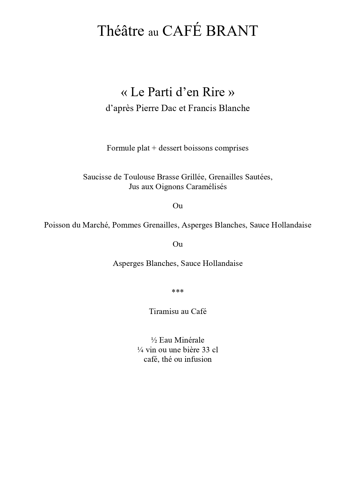 Diner spectacle de theatre d'humour "Le Parti d'en Rire " d'apres Pierre Dac & Francis Blanche le mercredi 6 mai 2026 à 19h